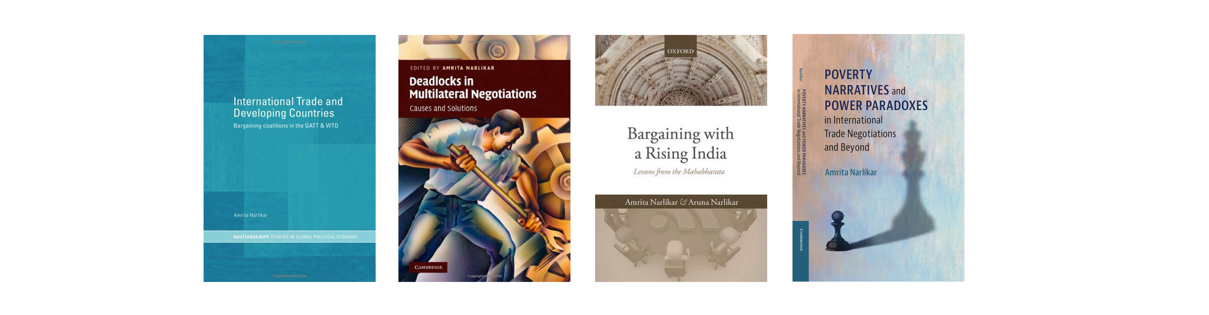 Some of Amrita’s books include (co-authored with Aruna Narlikar and Amitabh Mattoo) Strategic Choices, Ethical Dilemmas: Stories from the Mahabharat, Penguin Random House, 2023; (guest-edited with Daniel Drezner) The How Not To Guide for International Relations, International Affairs, Centenary Special Issue, September 2022; Poverty Narratives and Power Paradoxes in International Trade Negotiations and Beyond, Cambridge University Press, 2020; and (co-authored with Aruna Narlikar) Bargaining with a Rising India: Lessons from the Mahabharat, Oxford University Press, 2014.